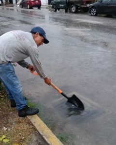 En coordinación con la Secretaría de Servicios Públicos Municipales, brigadas operativas mantienen monitoreo permanente en puntos susceptibles a encharcamientos, además de atender reportes ciudadanos y verificar el funcionamiento de rejillas y sistemas de desagüe.