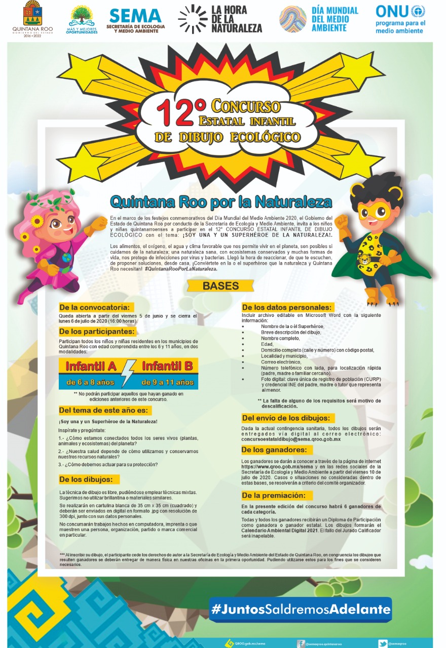 Convocan al 12° Concurso Estatal Infantil de Dibujo Ecológico vía digital Publicado Augusto O - 6 junio, 2020 *Para conmemorar el Día Mundial del Medio Ambiente, en este año el tema es La… Leer más