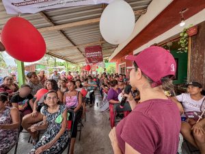 En otro día de recorrido en las comunidades de la ribera del río Hondo, la candidata de Morena y la coalición Sigamos Haciendo Historia visitó las localidades de Álvaro Obregón Viejo, Sabidos, Allende, Ramonal y Palmar, estando acompañada de Diana Gutiérrez, candidata a la diputación local del Distrito 14.