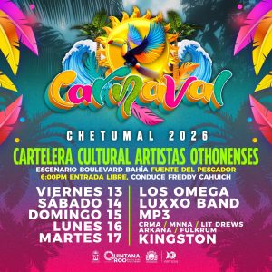 CHETUMAL, 10 de febrero. – ¡El Carnaval de Chetumal de este año viene con todo!, con la puesta de tres escenarios que recibirán a más de 30 artistas locales e internacionales.