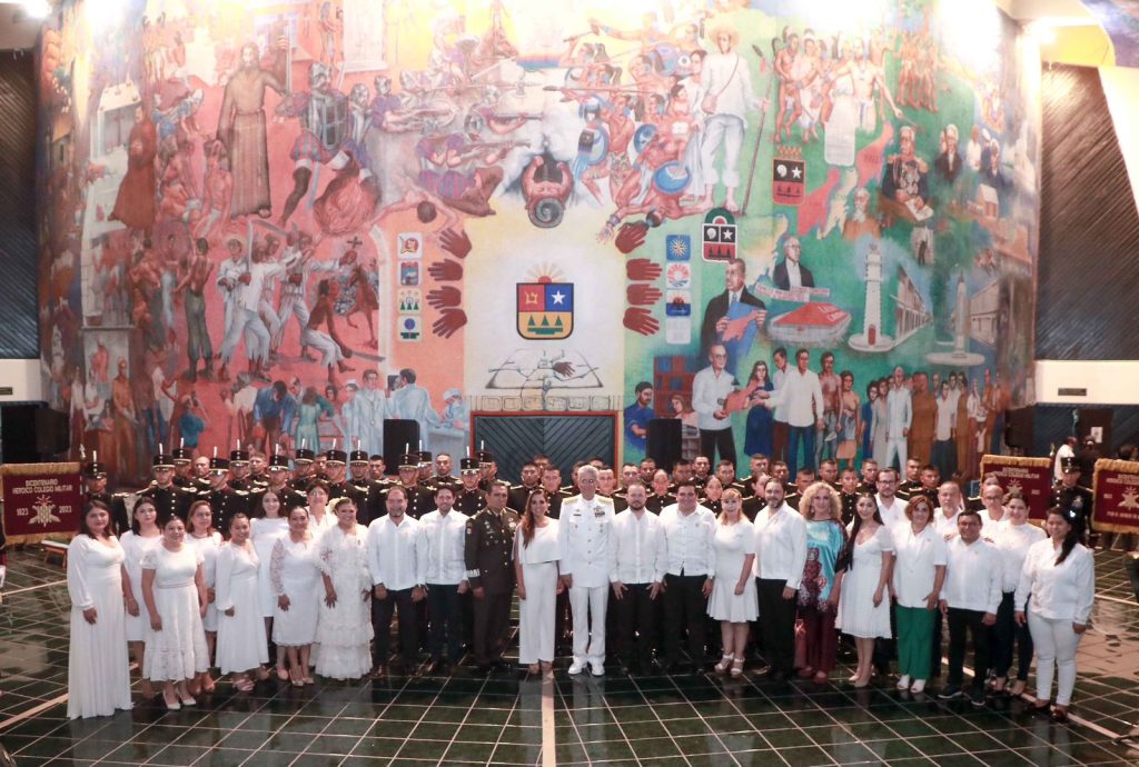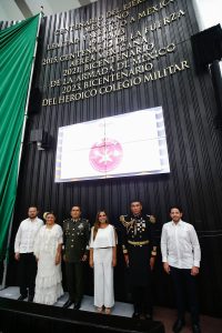 Chetumal, 28 de agosto. – Como muestra de admiración y respeto a las mujeres y hombres valientes que día a día protegen a México y a Quintana Roo; los representantes de los poderes Ejecutivo, Legislativo y Judicial, así como el Comandante de la Décima Región Militar. Homero Mendoza Ruiz, en representación del Secretario de la Defensa Nacional; develaron la leyenda “2023, Bicentenario del Heroico Colegio Militar”, la cual fue inscrita en letras doradas en el muro de honor del Poder Legislativo.