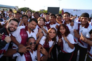 La gobernadora Mara Lezama dijo sentirse orgullosa de los atletas quienes pondrán todo el corazón y el esfuerzo en las competencias para traer los mejores resultados. Felicitó a papás, abuelitos, tías, que han sido fundamentales en el apoyo para que vayan a representar a Quintana Roo.