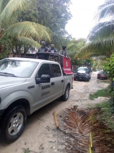 *Elementos navales efectúan recorridos terrestres en Isla Mujeres, Puerto Morelos y Benito Juárez para verificar las áreas en situación de riesgo.