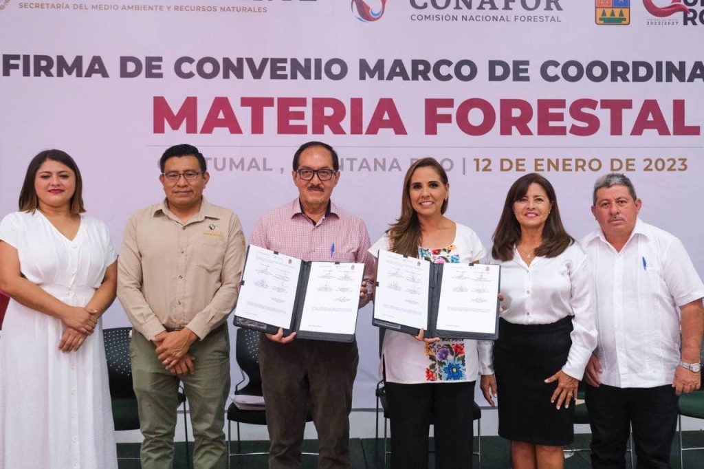 Chetumal, 12 de enero.- La gobernadora Mara Lezama Espinosa y el director general de la Comisión Nacional Forestal (Conafor) Luis Meneses Murillo firmaron el convenio marco de coordinación en materia forestal 2022-2024 que tiene como eje central la política del gobierno de la cuarta transformación para la atención prioritaria a los pueblos originarios, a ejidos y comunidades.