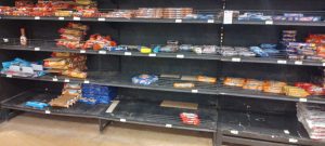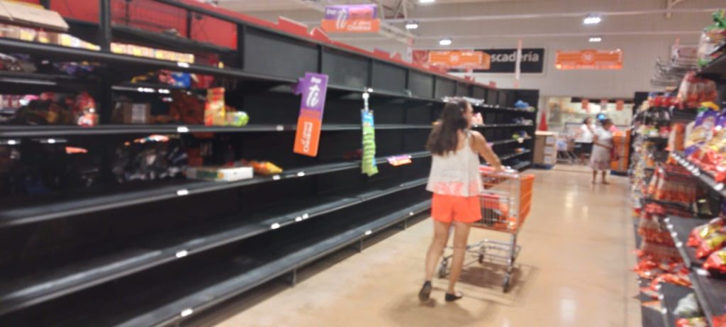 En el ambiente de los supermercados no se percibió prisa o desesperación por los estantes vacíos y semivacíos, se pasaban de largo en busca de un reemplazo para no tener que volver otro día pues no saben si habrá tiempo en sus empleos para avituallarse. Sólo en el área de carnes de Chedraui la falta de más trabajadores en la atención al público provocó filas y los refrigeradores lucían vacíos en la carne de res y cerdo de mayor consumo.