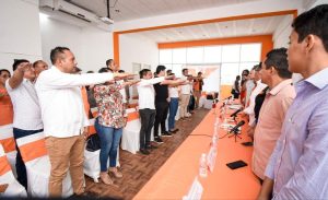 En un acto realizado en la Casa Naranja de Cancún y ante la presencia del Presidente del Comité Nacional de Organización de Comités Electorales de MC, Gustavo Flores Llamas, el Dr. Pech puntualizó que mientras se toman decisiones que definirán el camino que seguirá el partido naranja, se fortalece la estructura que en los comicios de 2024 cuidarán y defenderán el voto naranja.