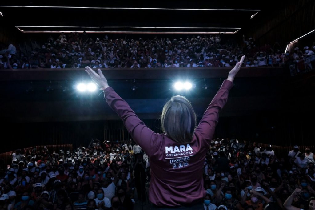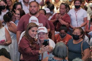 BENITO JUÁREZ, 23 de abril.- Mara Lezama, candidata de Morena a la gubernatura, agradeció hoy a las estructuras que conforman simpatizantes y amigos, quienes han estado a su lado en estos años de lucha, “que se la rifan en la calle, bajo los rayos del sol”, para dar la batalla casa por casa, colonia por colonia y región por región, hablando de los valores y bondades de la 4T.