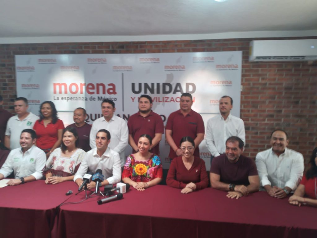 En conferencia de prensa que ofreció este domingo en la casa Morena acompañada de los virtuales integrantes del Congreso de la Unión, Eugenio Segura, Anahi González. Humberto Aldana, Elda Xix, Mildred Ávila, Juan Carrillo, así como los diputados electos, Diana Gutiérrez y Saulo Aguilar y Renán Sánchez así como la presidenta municipal de OPB, Yensunni Martínez Hernández, la líder morenista dijo que se vienen grandes cosas de bien para Quintana Roo.