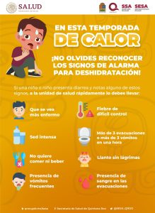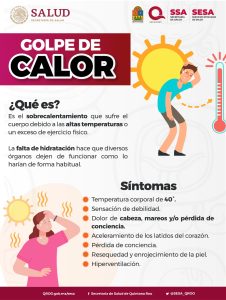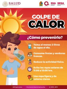 BENITO JUÁREZ, 15 de junio.- El riesgo de sufrir golpe de calor, así como deshidratación y quemaduras en la piel es latente en cada temporada de calor, por lo que es de vital importancia tomar las medidas preventivas y ante cualquier síntoma acudir a la unidad médica más cercana.