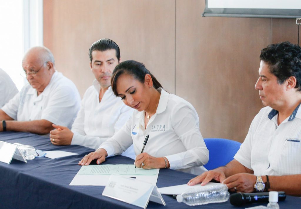 SOLIDARIDAD, 3 de mayo.- Laura Fernández, candidata a gobernadora por la coalición “Va Por Quintana Roo”, firmó sus Compromisos Por Quintana Roo ante la cúpula empresarial de la entidad, donde estableció que será una gobernadora municipalista para mejorar en serio la situación que viven actualmente los 11 Ayuntamientos.