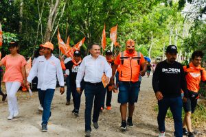 En recorridos por las comunidades de San Francisco Botes, Pucté, Javier Rojo Gómez y Álvaro Obregón, el Dr. Pech estuvo acompañado por el candidato a diputado por el Distrito XIII de MC, Martín Morales.