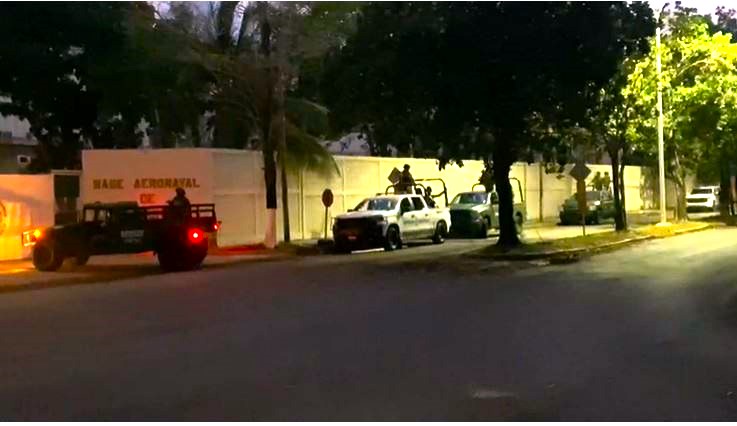 Los efectivos militares resguardaron la seguridad del perímetro en el que pernocta el mandatario federal quien se prevé que este sábado esté acompañado por la gobernadora Mara Lezama para supervisar los avances de los tramos 6 y 7 del Tren Maya entre otras obras que la federación tiene en marcha en territorio quintanarroense como lo es el recinto ferial.