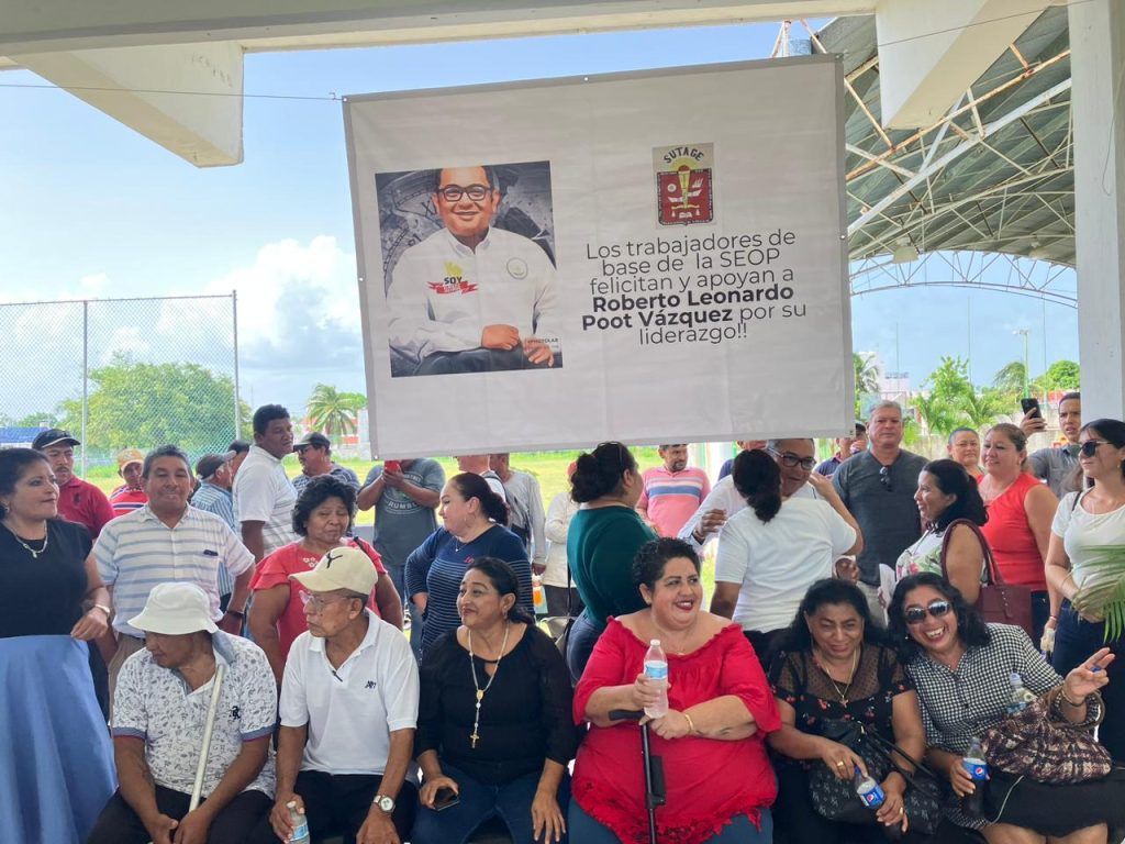 CHETUMAL, 17 de agosto.- Roberto Leonardo Poot Vázquez fue reconocido de nuevo como secretario general del Sindicato Único de Trabajadores al Servicio del Gobierno del Estado (Sutage) y pidió a la base trabajadora que le den un plazo de aquí hasta diciembre para ir sacando el rezago de trabajo acumulado de varios meses y que se reflejen los beneficios que les corresponde como empleados del sector público.