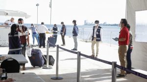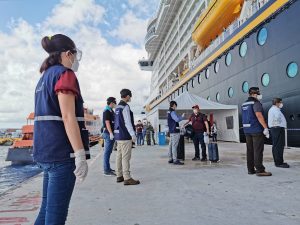 Cozumel, Q. R. – Bajo estrictas medidas de seguridad sanitaria, el Presidente Municipal, Pedro Joaquín Delbouis, constató la llegada de 68 trabajadores mexicanos de la empresa Disney, entre ellos 15 quintanarroenses, libres de Covid-19, quienes viajaban en el crucero Disney Fantasy y hoy arribaron al muelle de Punta Langosta, como parte del puente humanitario que tiende Cozumel durante la emergencia sanitaria por coronavirus.