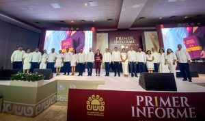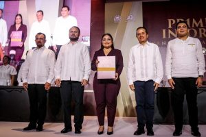 En su oportunidad, el gobernador del estado de Quintana Roo, Carlos Joaquín González, felicitó a la edil por la entrega de su primer informe de gobierno; indicó que el trabajo en unidad trajo resultados sólidos al estado, en la construcción de un destino más amplio que beneficie a los quintanarroenses.