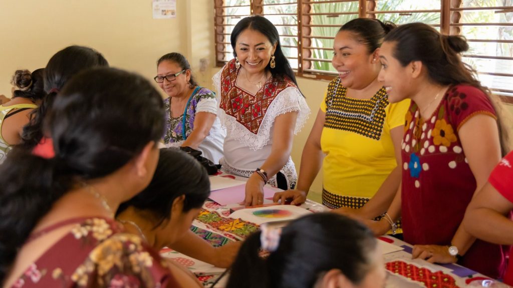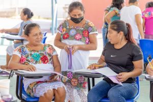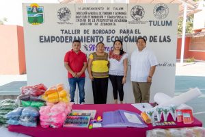TULUM, 20 de febrero.- En apoyo a las mujeres de la zona maya de Tulum, el Ayuntamiento a cargo el presidente municipal Marciano Dzul Caamal brinda un curso de bordado tradicional en beneficio de 70 emprendedoras tulumnenses.