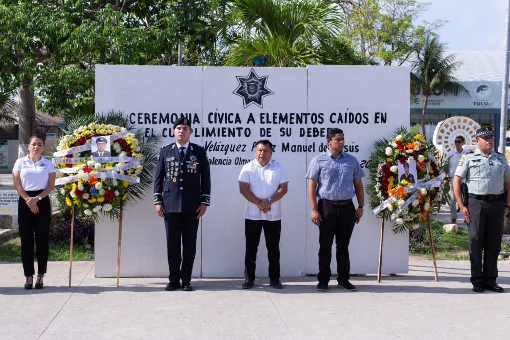Durante el acto, los agentes de la dirección general de Seguridad y Protección Ciudadana de Tulum, encabezados por el comisionado Oscar Alberto Aparicio Avendaño, así como regidores, funcionarios y representantes de la Guardia Nacional, Marina, el Ejército Mexicano y la Policía Estatal, rememoraron a sus compañeros y dieron el pésame a las familias de las víctimas.