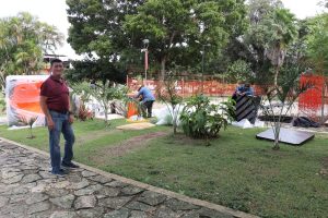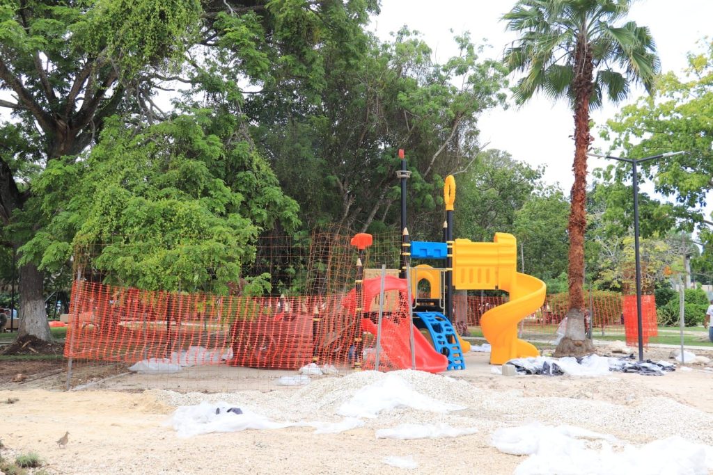 BACALAR, 7 de noviembre. – Para seguir teniendo espacios dignos que puedan disfrutar las familias y turistas bacalarenses, el gobierno municipal que encabeza José Alfredo Contreras se dio a la tarea de remodelar el parque central “Ángel Remigio Rosado”, el cual contará con dos nuevas áreas de juegos infantiles.