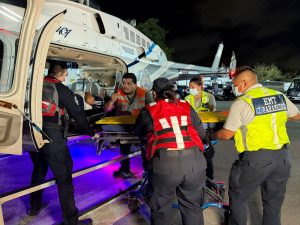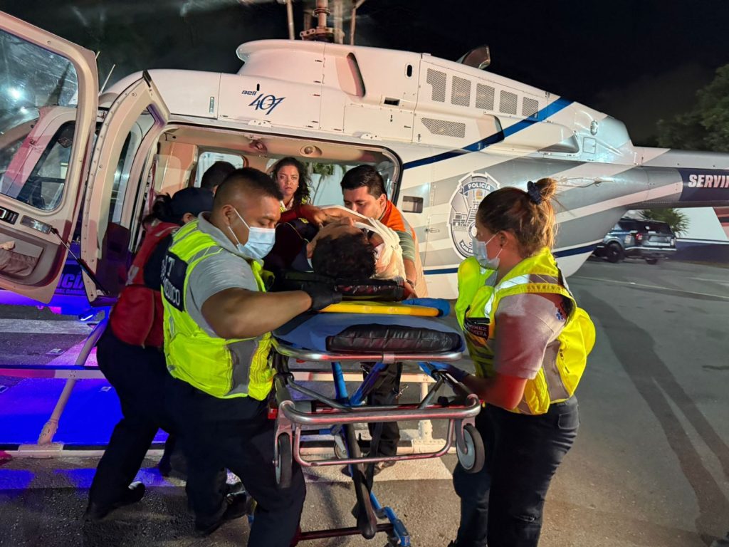 Gracias a la inmediata respuesta de los cuerpos de emergencia y al uso del helicóptero municipal el cual fue adquirido como parte de la histórica inversión en seguridad y protección civil impulsada por el gobierno de la presidenta Estefanía Mercado, se logró trasladar vía aérea a un lesionado hacia el hospital general de zona del IMSS No. 18 de Playa del Carmen.