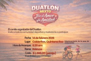 CHETUMAL, 7 de enero. – La comunidad deportiva de la región se prepara para celebrar el Día de San Valentín de una manera activa y competitiva con la primera edición del Duatlón Calderitas.