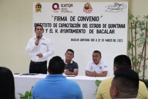 Por el ICATQR estuvieron presentes el director de la Unidad de Capacitación Bacalar, Rivelino Valdivia Villaseca; la directora de Vinculación, Andrea Mayoral Bravo; el director de Administración, Julio Eduardo Arizmendi Novelo; el director de Planeación, Manuel Raygoza Alcocer y el director Técnico, Académico y Enlace, Primitivo Alonso Cervera.