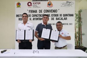 Por el ICATQR estuvieron presentes el director de la Unidad de Capacitación Bacalar, Rivelino Valdivia Villaseca; la directora de Vinculación, Andrea Mayoral Bravo; el director de Administración, Julio Eduardo Arizmendi Novelo; el director de Planeación, Manuel Raygoza Alcocer y el director Técnico, Académico y Enlace, Primitivo Alonso Cervera.