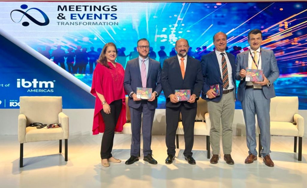 En el panel también estuvieron Fernando Fondevila, presidente y CEO de Promtur Panamá y Carlos de Sebastian, director de las Relaciones de Asociaciones de MCI Group; fue moderado por Ana María Viscasillas, miembro de las Juntas de las Asociaciones EIC (Events Industry Council) y PCMA (Professional Convention Management Association, por sus siglas en inglés), además del presidente del Consejo Mexicano de la Industria de Reuniones (COMIR), Alejandro Ramírez.