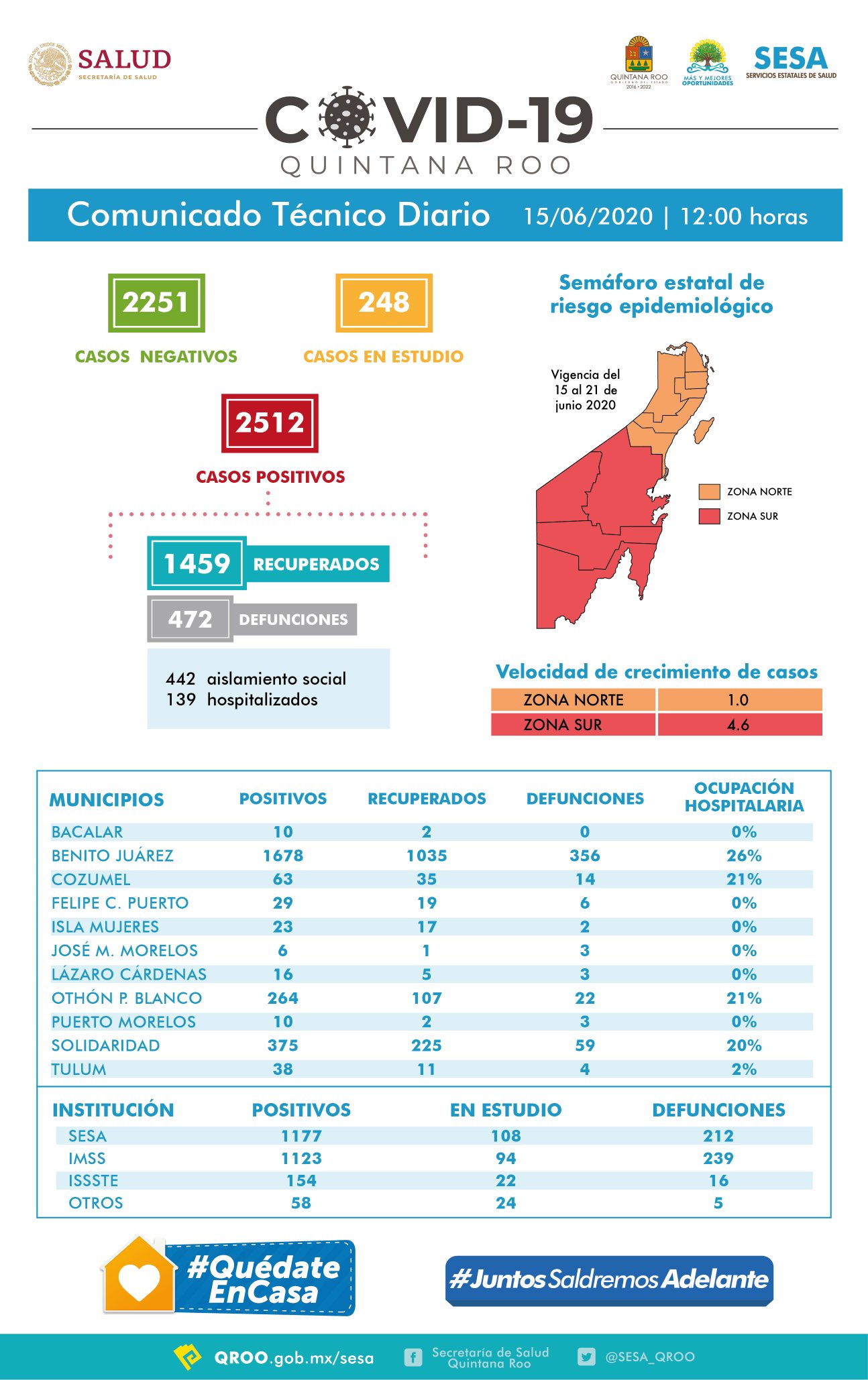 Por COVID-19 van 472 defunciones en Quintana Roo Publicado Augusto O - 15 junio, 2020 *Da a conocer la Secretaría de Salud las cifras correspondientes al 15 de junio Cancún,… Leer más