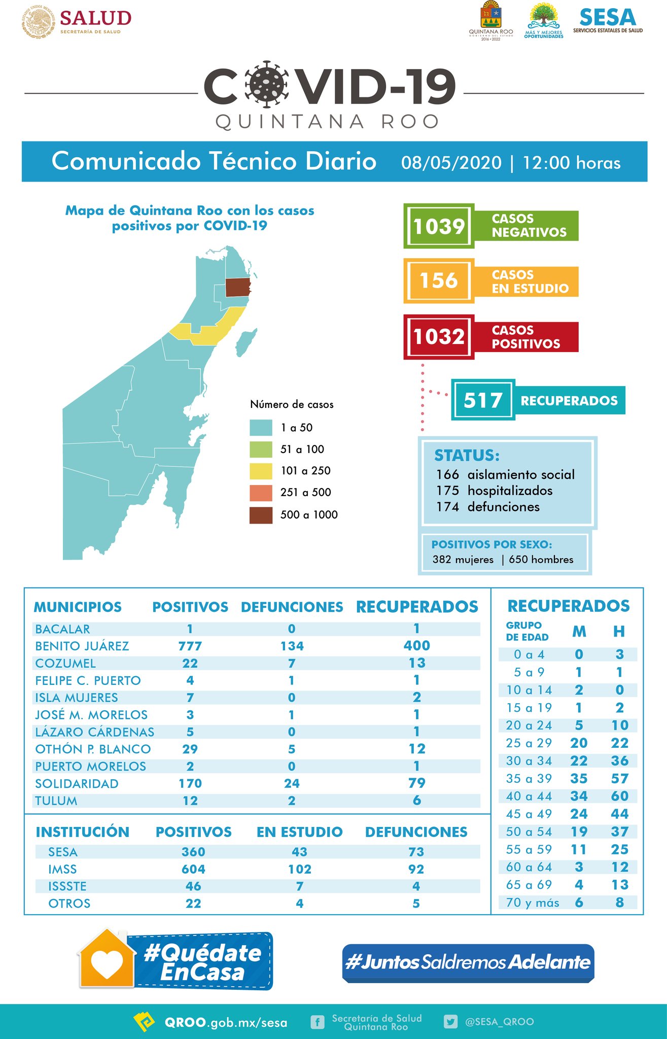 Llega Quintana Roo a mil 32 casos de COVID-19; en 24 horas detectaron 38 nuevos contagios