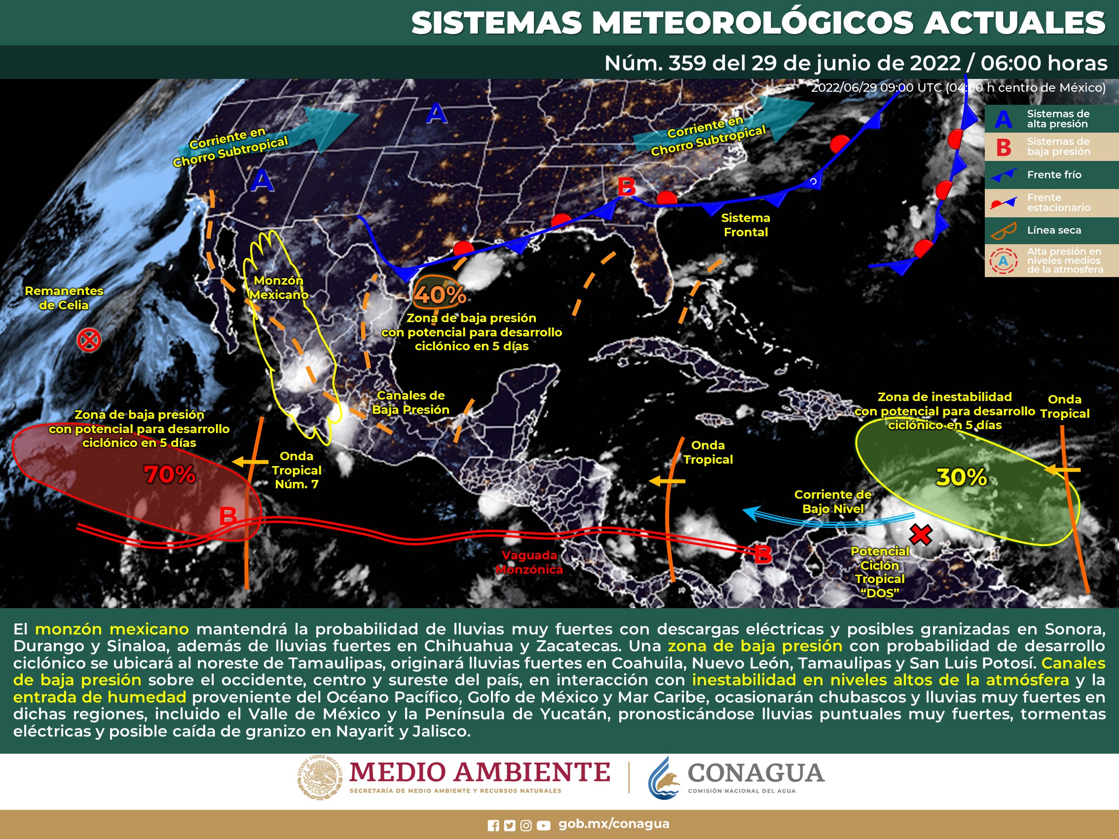 Pronóstico Meteorológico General Publicado Augusto O - 29 junio, 2022 Servicio Meteorológico Nacional, fuente oficial del Gobierno de México, emite el siguiente aviso: No.… Leer más