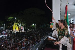 Antes de proceder al Grito de Independencia, la presidenta de Othón P. Blanco, Yensunni Martínez Hernández, dio lectura a los “Sentimientos de la Nación” del cura José María Morelos y Pavón.