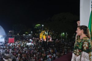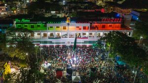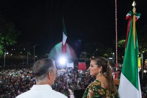 CHETUMAL, 15 de septiembre.- La gobernadora Mara Lezama Espinosa celebró con el pueblo una noche mexicana, conviviendo con miles de familias que disfrutaron de una verbena popular en la explanada de la Bandera para luego dar el tradicional Grito de Independencia desde el balcón central de Palacio de Gobierno.
