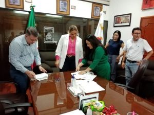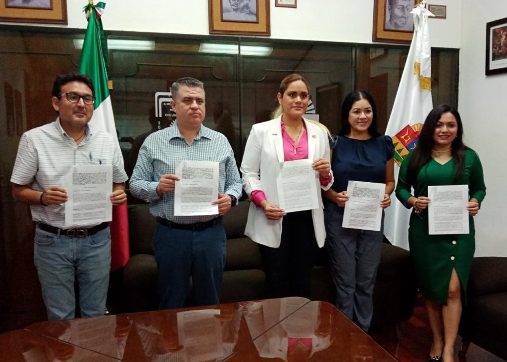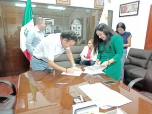 En la oficina de la Jugocopo se llevó a cabo la firma de este convenio en el que participaron la presidenta de la Asociación Mexicana de Mujeres Empresarias capítulo Chetumal, Wilma Contreras Canto; el presidente de la Canaco de Chetumal, Juan Jaime Mingüer Cerón; la subsecretaria de Servicios Administrativos del Congreso, Ilse Garrido Cervera y el secretario del Congreso, Benjamín Vaca González.
