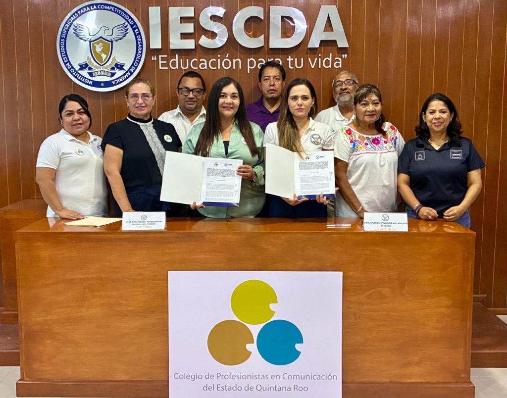 CHETUMAL, 21 de mayo. – El Colegio de Profesionistas en Comunicación del Estado de Quintana Roo (CPCEQROO) y el Instituto de Estudios Superiores para la Competitividad y el Desarrollo de América (IESCDA), firmaron un convenio de apoyo con el cual los comunicadores podrán reforzar su profesionalización, según explicó la presidenta del órgano colegiado, Maribel Torres Martín.