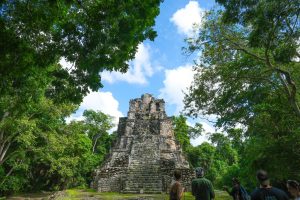 De aquí se avanza hacia Cobá, una ciudad maya comunicada a través de una extensa red de caminos blancos, los sacbé, que comunicaba a otros pueblos mayas, con una pirámide Nohoch Mul, de casi 50 metros de altura.