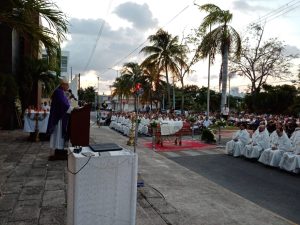 La celebración Eucarística de exequias tuvo lugar en la parroquia del Sagrado Corazón de Jesús, de Chetumal y fue presidida por Monseñor Pedro Pablo Elizondo Cárdenas en comunión con su Presbiterio, diáconos, religiosos y todo el pueblo fiel de Dios en torno al altar de Dios.