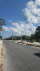 Otra de las obras corresponde a la -Sustitución de alumbrado público tradicional por celdas de energía solar en el ramal a Punta Sam-; estas obras permiten una mejor infraestructura urbana que brinda mayor seguridad a las familias que las habitan o transitan especialmente por las noches.
