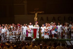 Estefanía Mercado también participó en el tradicional Baile de la Cabeza de Cochino, junto con funcionarios de su gabinete, cuerpo de regidores, gremios de familias fundadoras y provenientes de otros municipios de Quintana Roo.