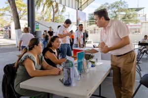 En representación del presidente municipal Marciano Dzul Caamal, el director general de Turismo y Economía, Jorge Mario Molina Pérez, dio la bienvenida a los establecimientos participantes y a la ciudadanía que puntualmente comenzó a interactuar con los representantes de distintos negocios para así conocer más acerca de los puestos de trabajo disponibles.