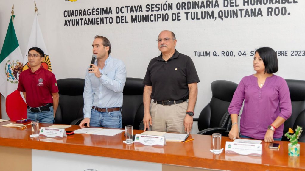 Tulum, 4 de septiembre.- Los regidores de Tulum aprobaron la exención del pago del Impuesto Predial y recargos del ejercicio fiscal 2023, al Sistema Nacional para el Desarrollo Integral de la Familia respecto al predio denominado “Campamento Recreativo Playa Aventuras Leona Vicario”.