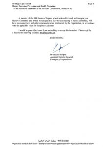 Ciudad de México. – La Organización Mundial de la Salud emitió un documento mediante el cual confirma a Hugo López-Gatell Ramírez, Subsecretario de Prevención y Promoción de la Salud, como integrante del Panel de Expertos del Reglamento Sanitario Internacional por cuatro años.