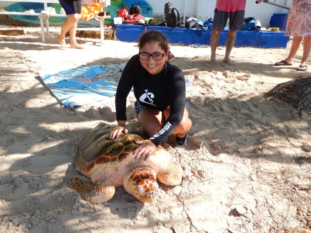 con el apoyo del Comité Estatal de Tortugas Marinas, la veterinaria Ana
