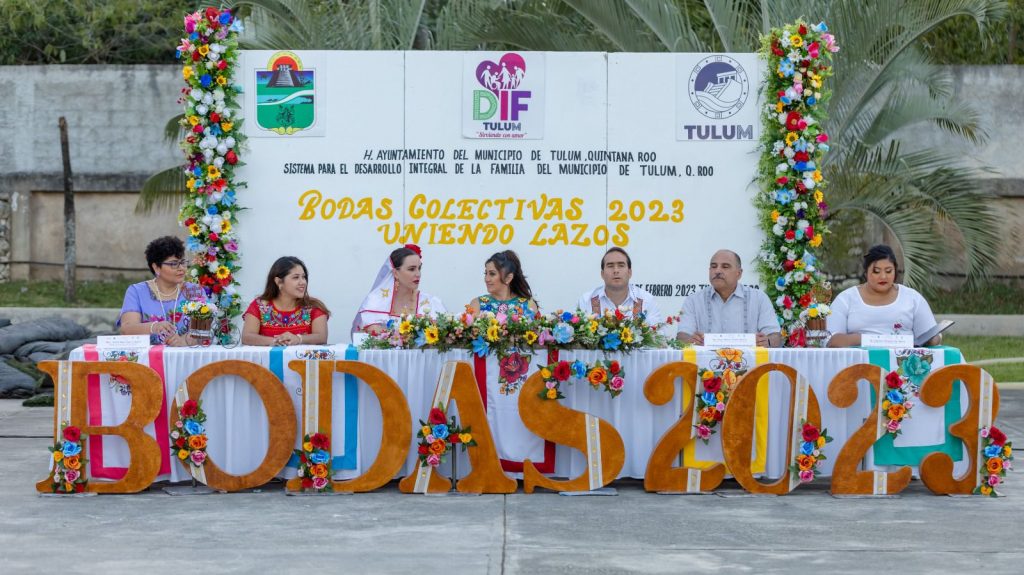 Es menester destacar que las bodas colectivas se desarrollaron en coordinación con la Dirección General y Oficialía del Registro Civil, DIF-Tulum y la oficialía del Registro Civil en Tulum.