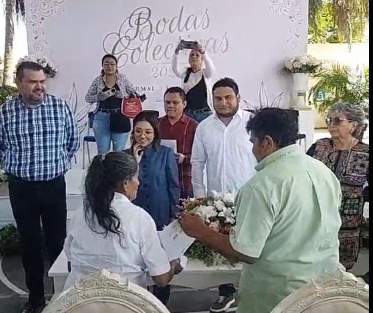 Las “Bodas Colectivas 2024” se realizó en el domo del parque conocido como La Alameda, ceremonia oficiada por Hugo Enrique Rojas Vázquez, director del Registro Civil del Ayuntamiento de Othón P. Blanco y en que Yensunni Martínez y David Hernández, presidenta municipal y presidente del DIF en Othón P. Blanco, respectivamente, fueron los testigos de honor de los contrayentes.