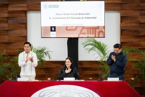 PLAYA DEL CARMEN, 26 de febrero. – En sesión extraordinaria, el Cabildo aprobó el acuerdo para remitir al Congreso del Estado la iniciativa de decreto por el que se reforman los artículos 127, 128, 134 y 135 de la Constitución Política del Estado y los artículos 8 y 12 de la Ley de los Municipios de Quintana Roo, referente al cambio de nombre del municipio de Solidaridad por Playa del Carmen.