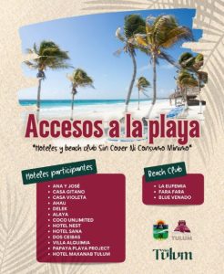 TULUM, 29 de septiembre. – El presidente municipal Diego Castañón Trejo anunció en conferencia de prensa que un total de 15 hoteles y club de playas se unen a la iniciativa de acceso libre a las playas, esto luego de pláticas en la que se acordaron permitir el ingreso a través de sus instalaciones para todas las personas, sin pago ni consumo mínimo.