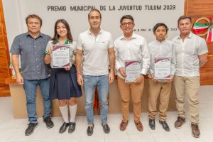 Previamente el edil, Diego Castañón, entregó el premio académico a la joven tulumnense, Valeria Elizabeth Alamilla Lizama; el premio cultural, a Edgardo Josué Dzib Uh; el premio superación de jóvenes con capacidades diferentes, Gilberto Be Dzul y el premio emprendedores a Josué Efraín Cocom Cocom.