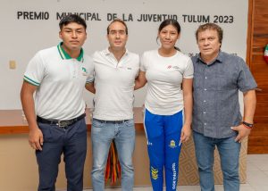 TULUM, 30 de agosto.- El Presidente Municipal de Tulum, Diego Castañón Trejo, encabezó la entrega de premios a los cuatro primeros lugares del Premio Municipal de la Juventud Tulum 2023. Además anunció la apertura de 25 becas a la juventud tulumnense.