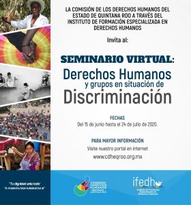 Chetumal, Q. R. – La Comisión de los Derechos Humanos del Estado de Quintana Roo lanzó la convocatoria para el seminario virtual “Derechos Humanos y Grupos en Situación de Discriminación”, mismo que se impartirá de manera gratuita.