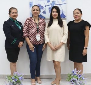 Las licenciadas María Elena Rodríguez Cortés, Laura Isabel Cocom y Alejandra Gómez Mora.María Elena Rodríguez Cortes, Laura Isabel Moo Chi, titulares respectivamente de la Coordinación al Derechohabiente, de Atención de Quejas, así como de Atención y Orientación al Derechohabiente del IMSS, destacaron los servicios brindados por el personal Técnico en Atención y Orientación al Derechohabiente (TAOD).